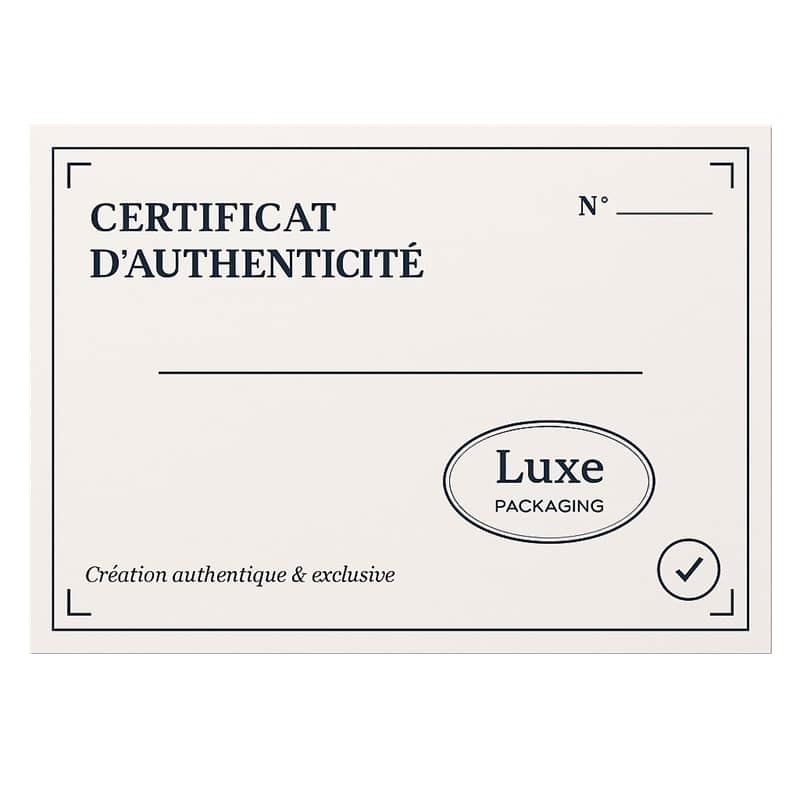 Chez Luxe Packaging, nous pensons le certificat non pas comme un justificatif… mais comme un sceau d’honneur, une empreinte d’éternité, une page blanche qui porte en elle toute l’histoire de votre création.